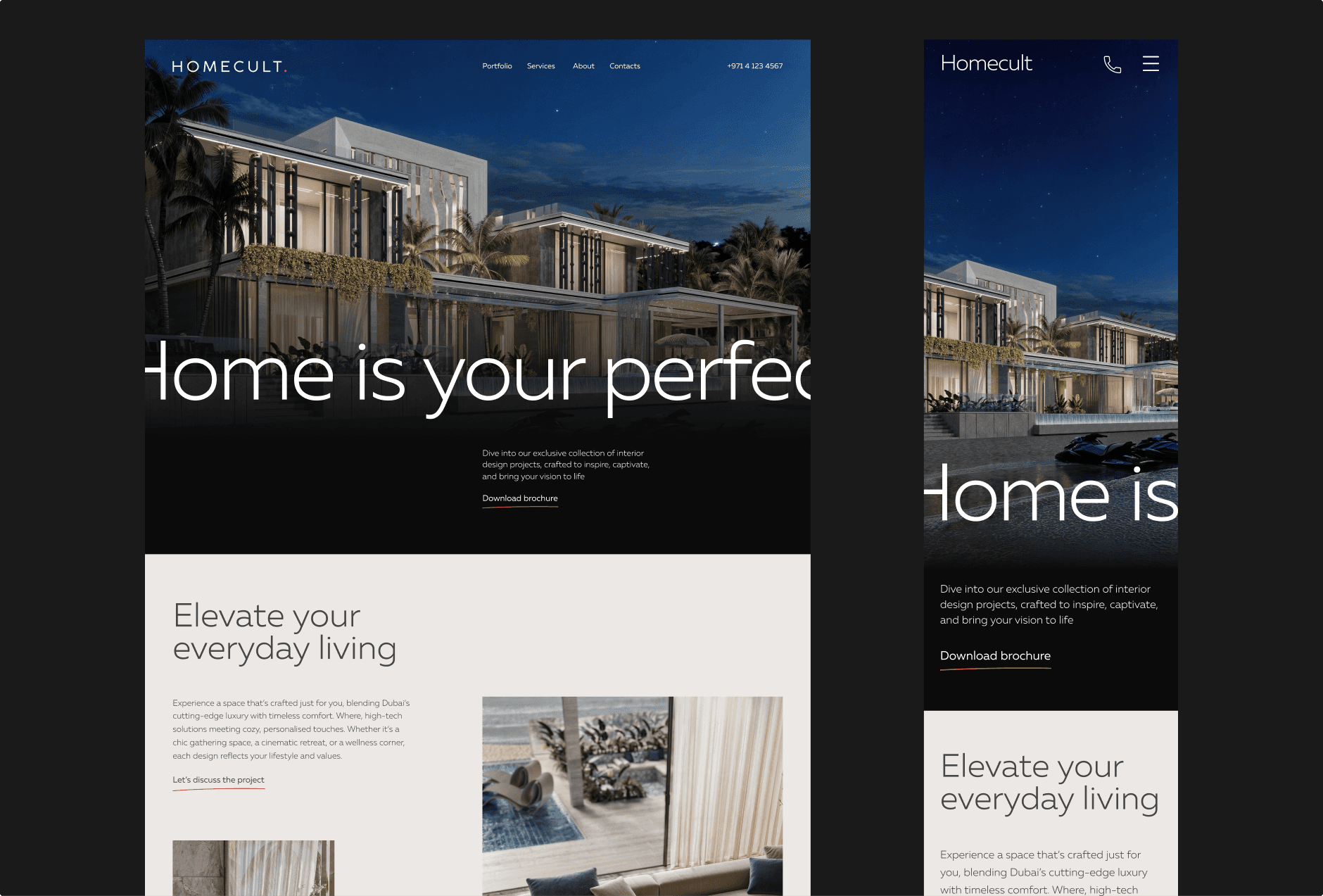 Client: Homecult designs luxurious villas in Dubai, blending elegance, functionality, and sustainability. With modern expertise, they create bespoke, high-quality homes tailored to each client’s vision. Challenge: Homecult needed a sleek, modern website to showcase their luxurious villa designs and drive sales through Meta and Google ads. The goal was to create a high-converting, minimalistic website that captivated Dubai’s discerning audience while effectively turning visitors into clients.