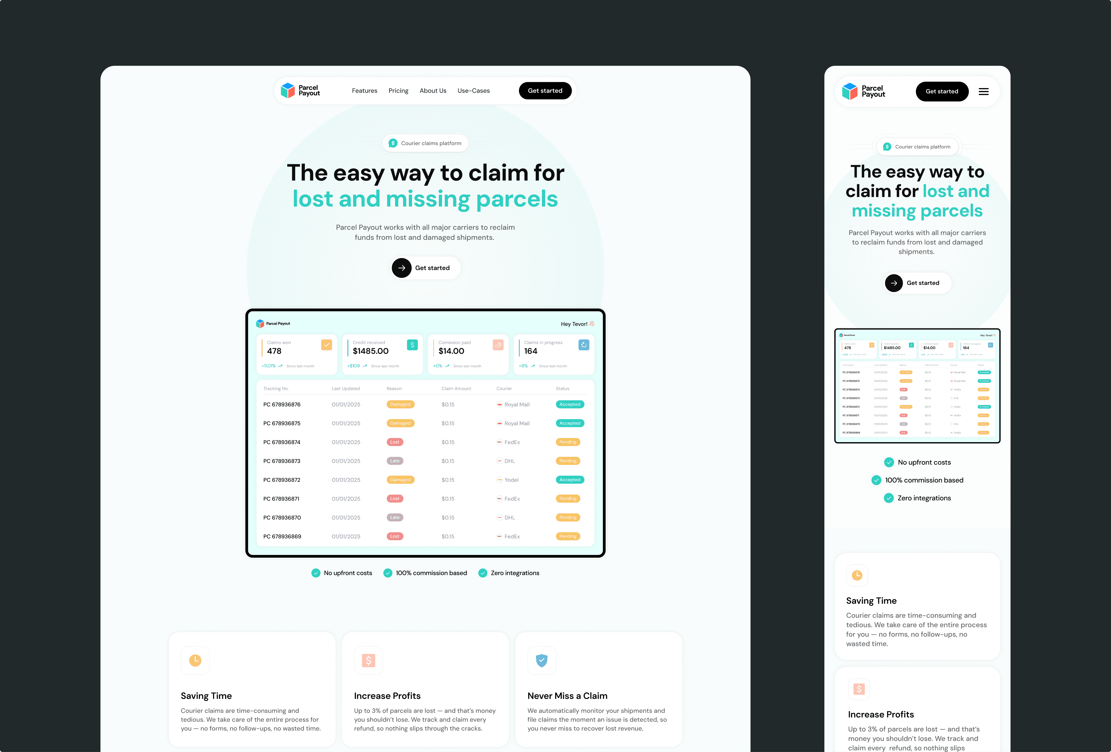 Client: Parcel Payout is a UK-based software startup that helps online retailers claim compensation for parcels lost by Royal Mail and other courier services. Challenge: As a new player in the courier claims space, Parcel Payout needed a clean, trustworthy brochure-style website to introduce their service, build credibility, and guide users to get in touch. The site had to include a new logo, full brand identity, and a WordPress build—simple, but polished and conversion-ready.